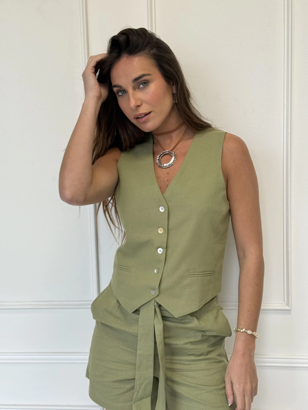 Chaleco de lino con botones al frente - ajustable en la espalda